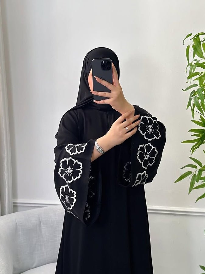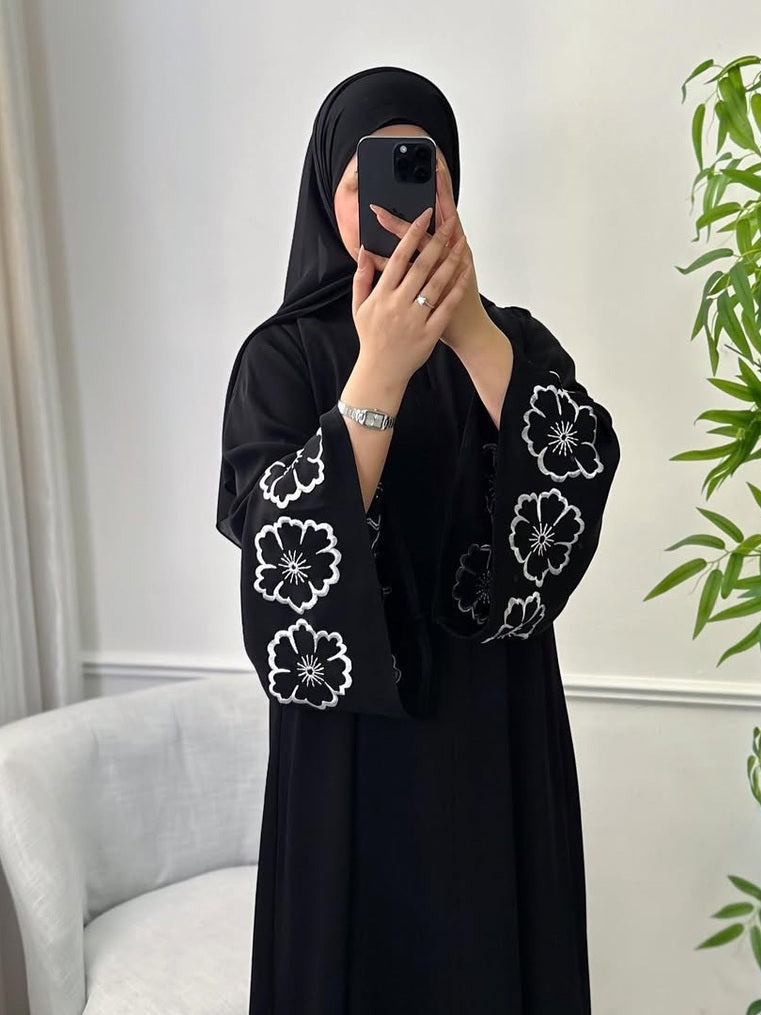 Introducing the Black Floral Regular Wear Abaya by Aurora, a timeless piece that effortlessly blends simplicity with sophistication. Designed for everyday wear, this abaya offers a perfect balance of comfort, style, and elegance. With its minimalist black design and subtle white lining, it provides a versatile and refined look suitable for various occasions.