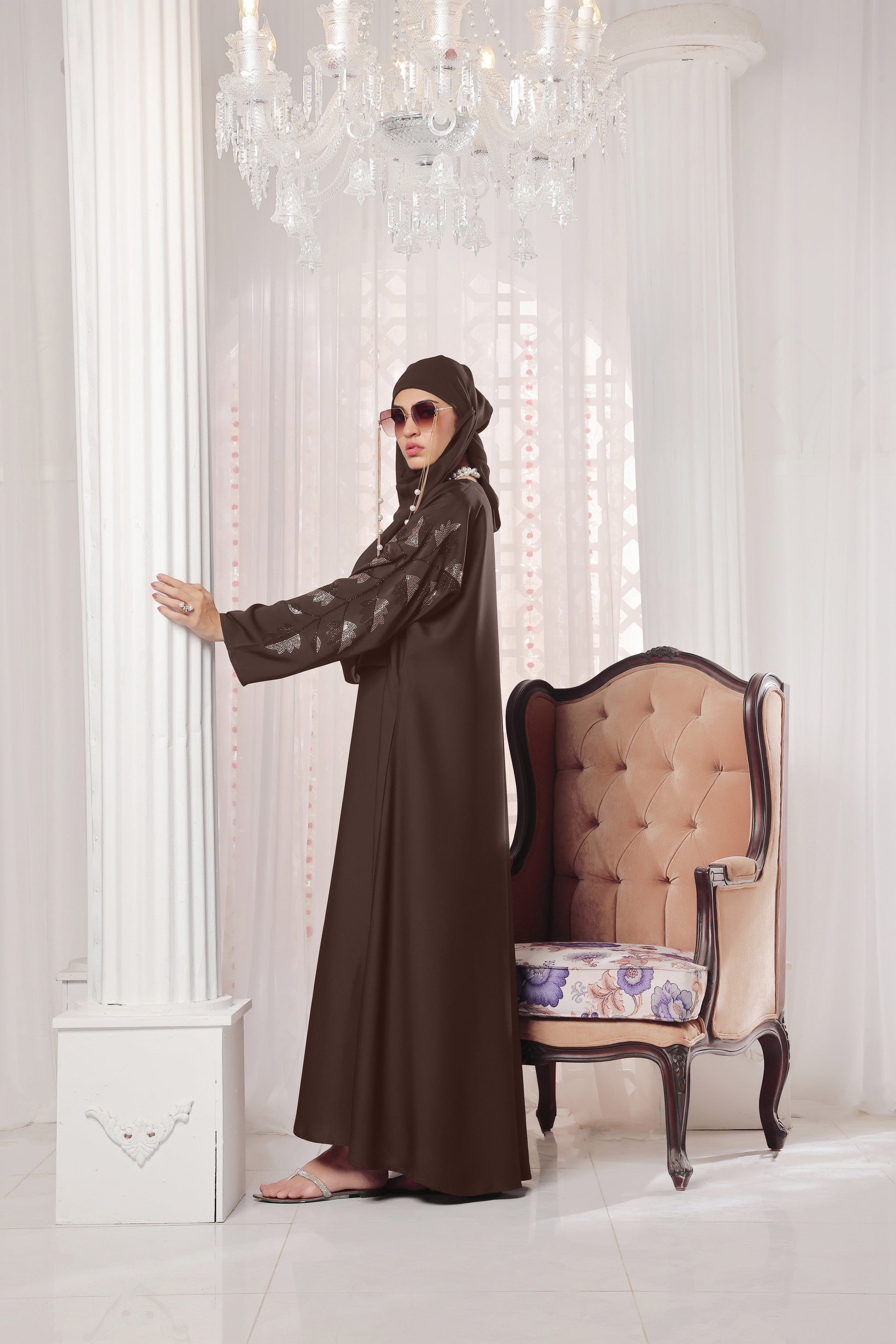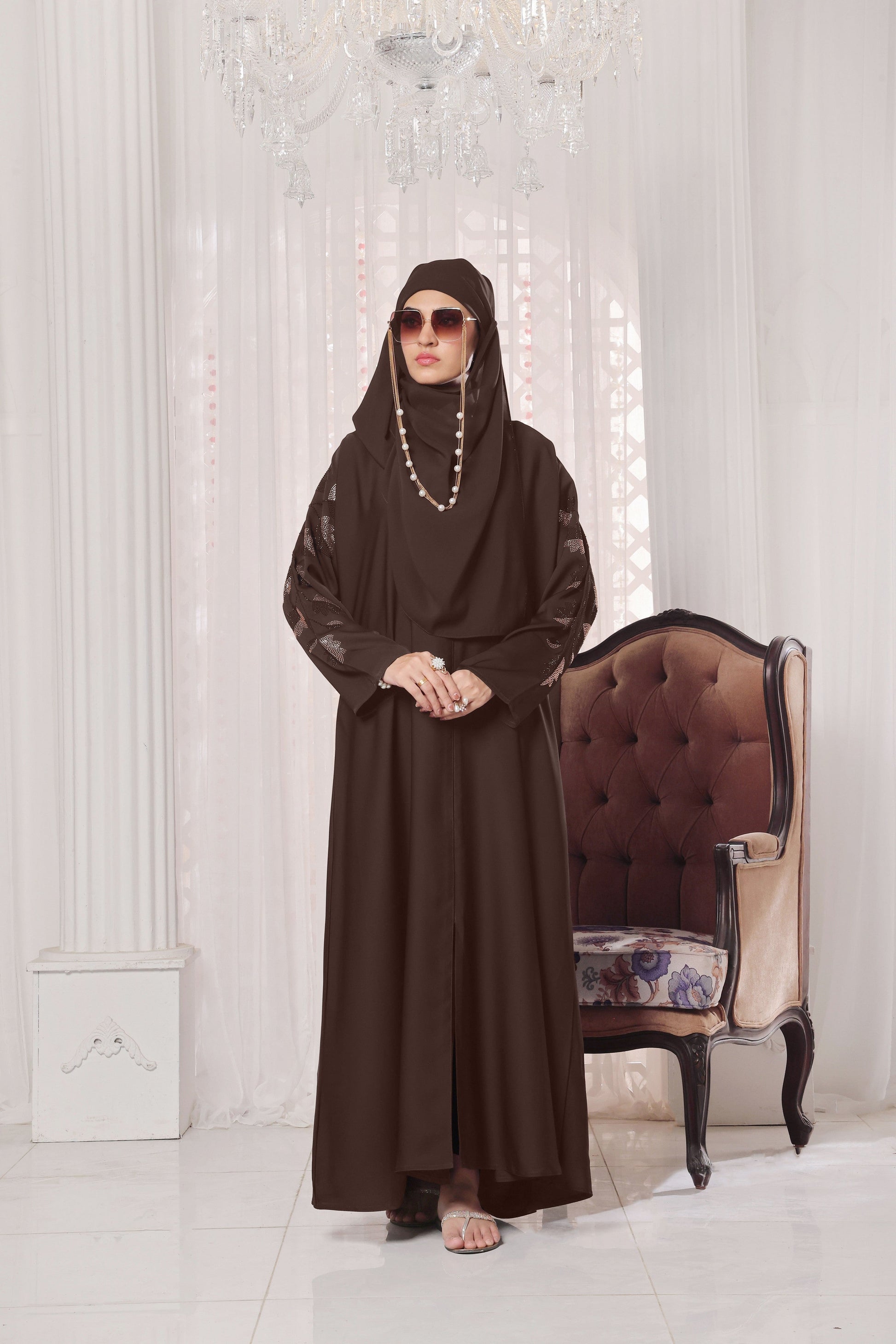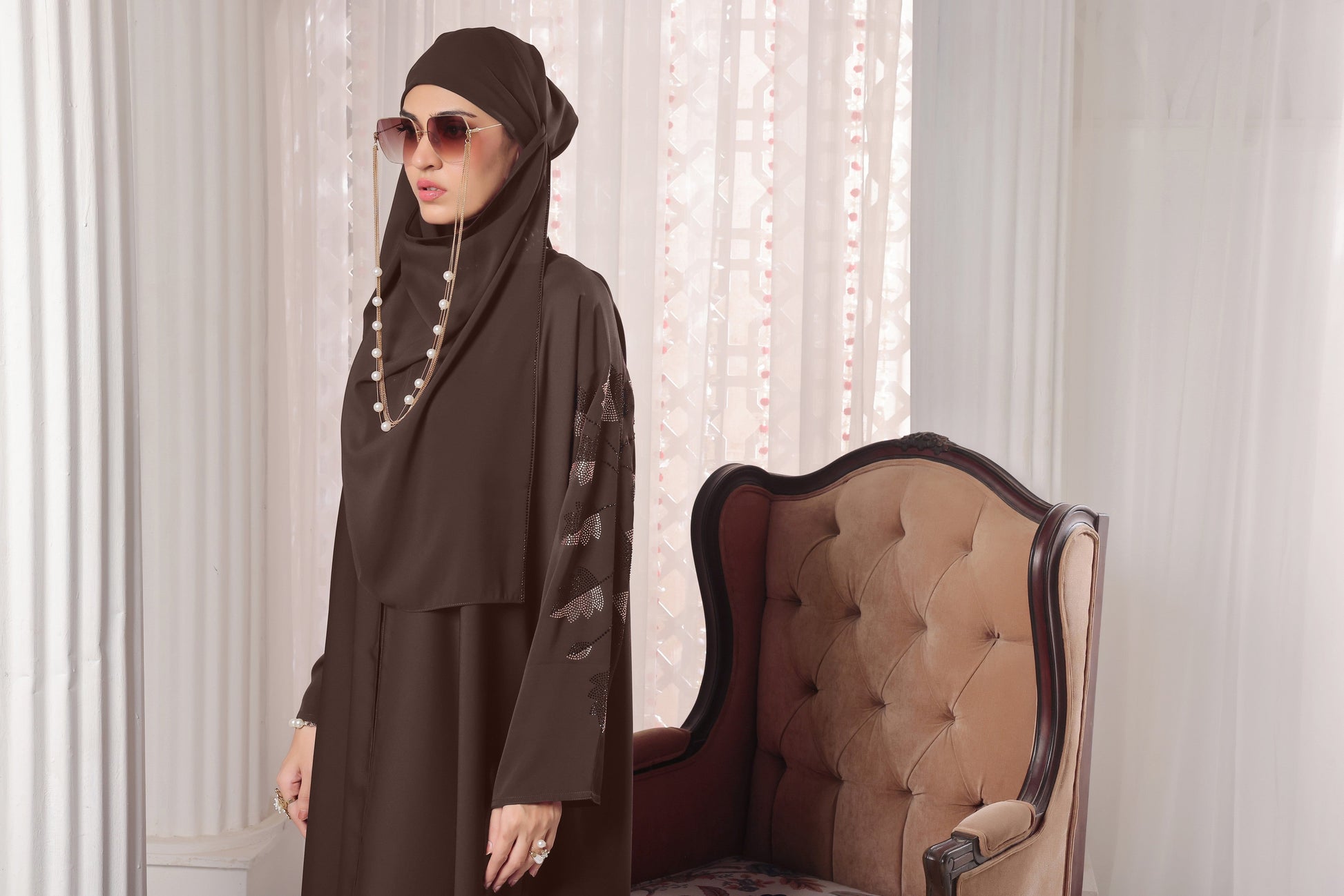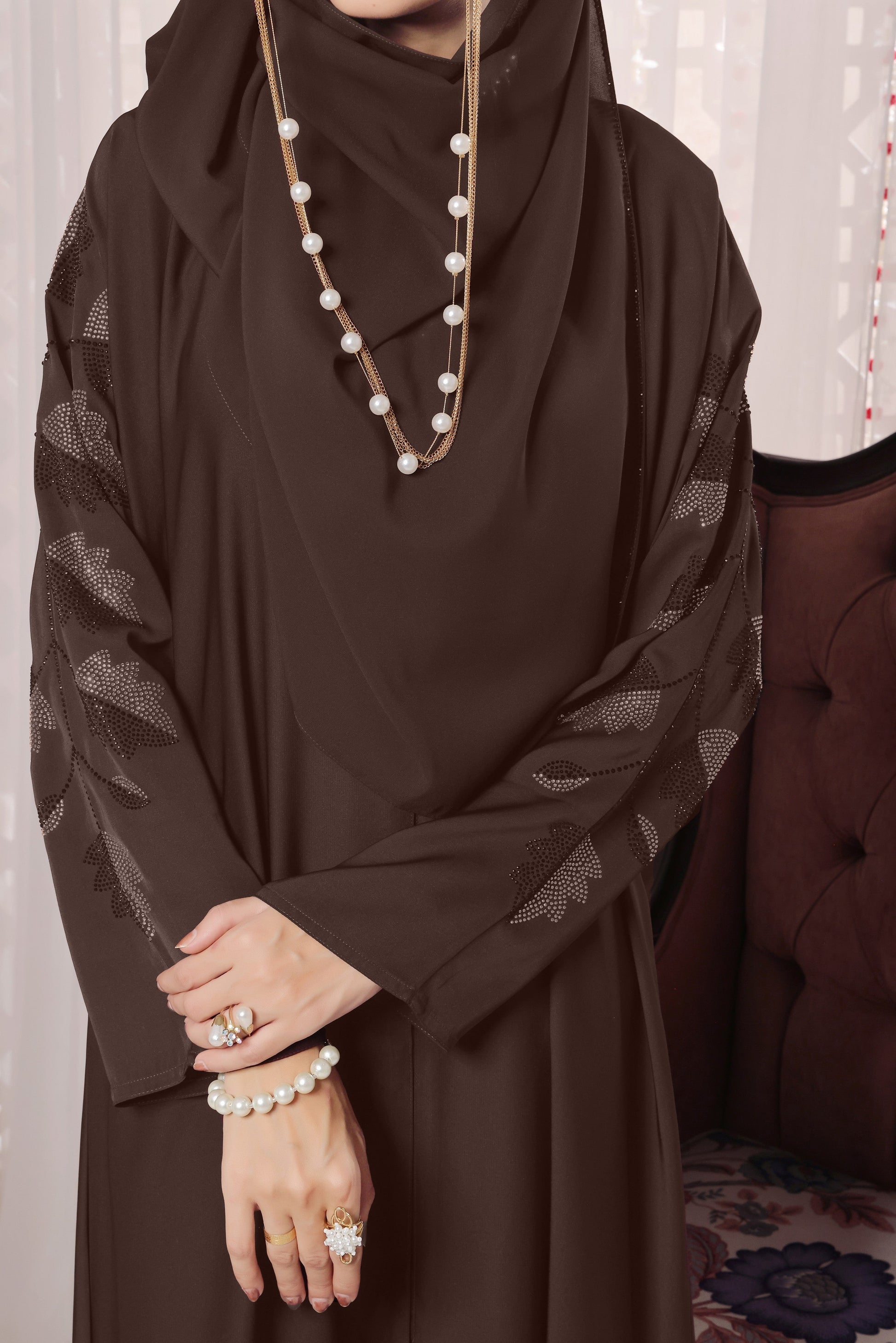 Comfort & Style Combined: Premium fabric ensures ease of movement while maintaining an elevated appearance. Turn heads with this stunning brown abaya—where timeless tradition meets contemporary sophistication through intricate hand-applied stonework in a delicate leaf motif.