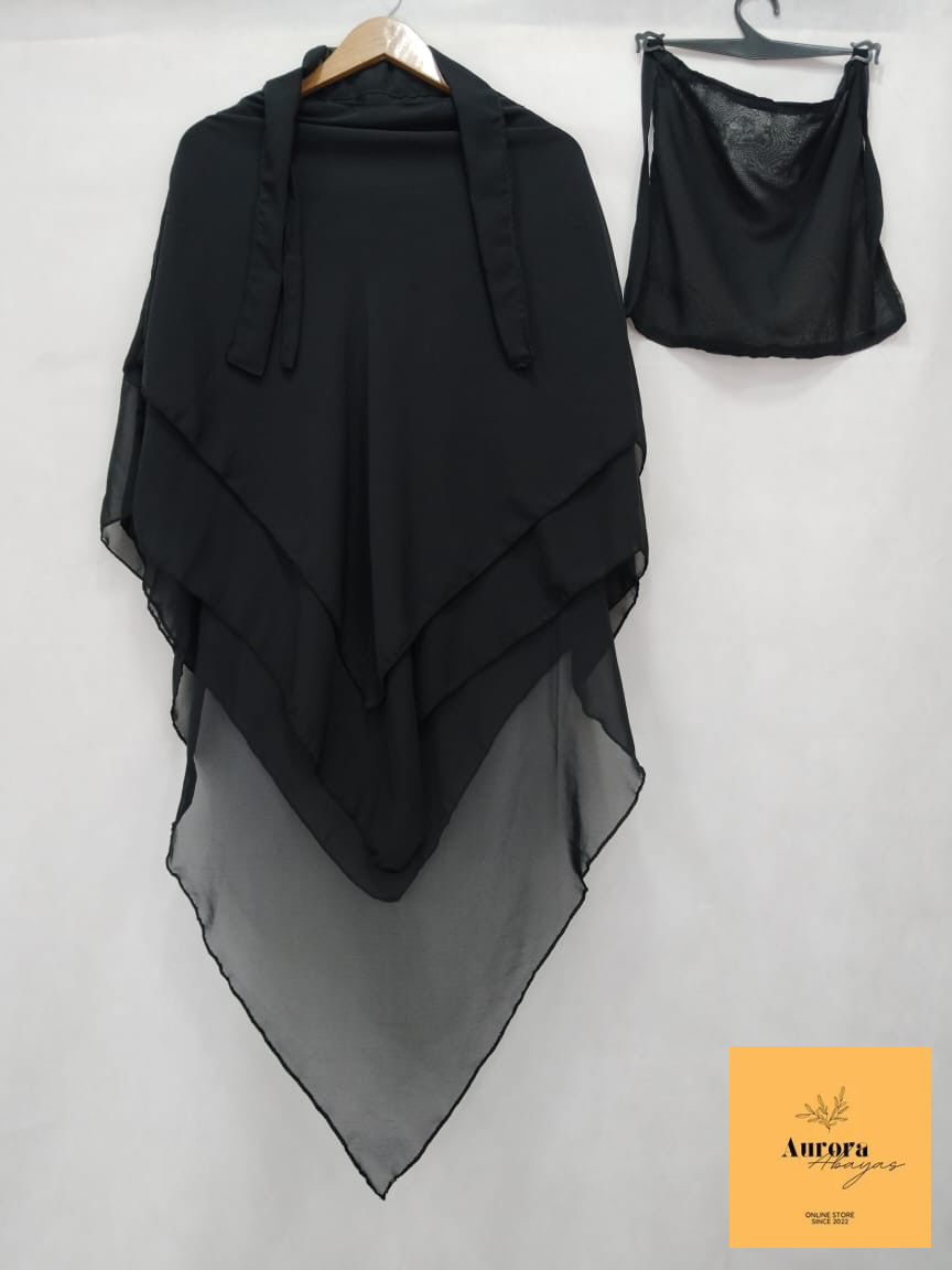 2 piece set 3 layer khimar with niqab