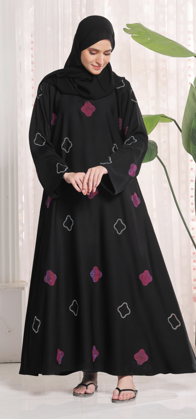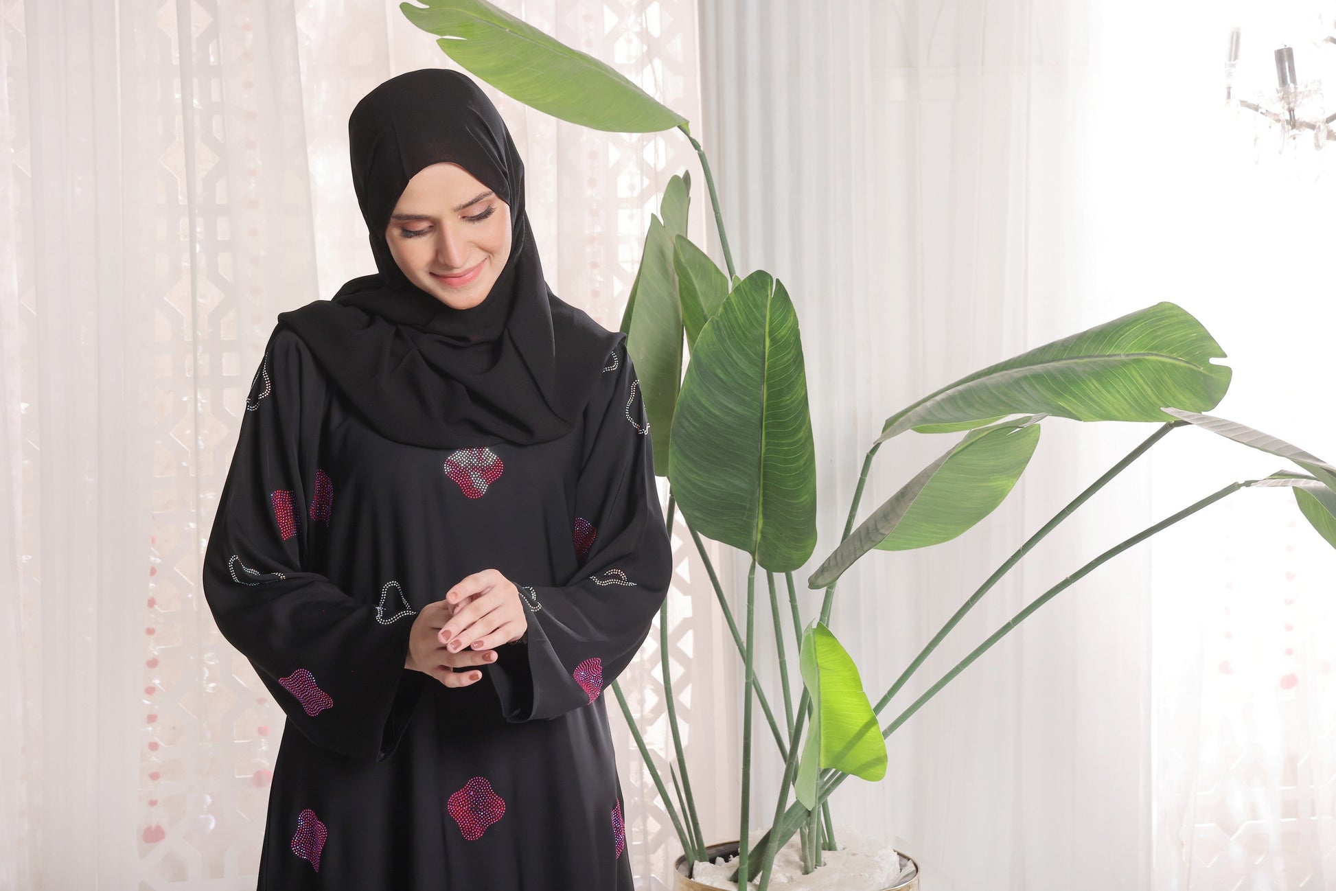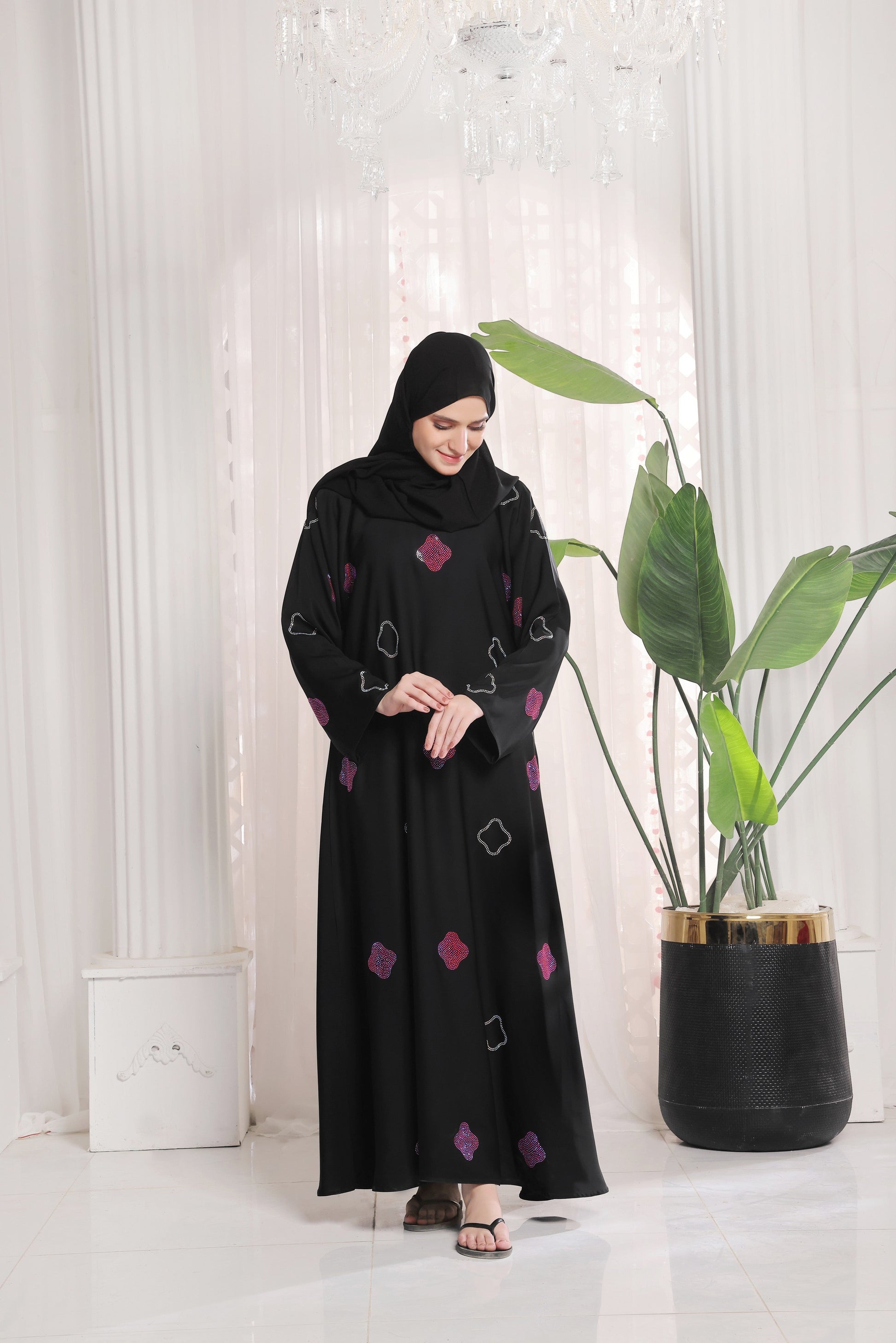Imported Luxe Nidha Fabric: Crafted from premium Nidha, this abaya offers an ultra-soft feel and fluid drape, ensuring all-day comfort.