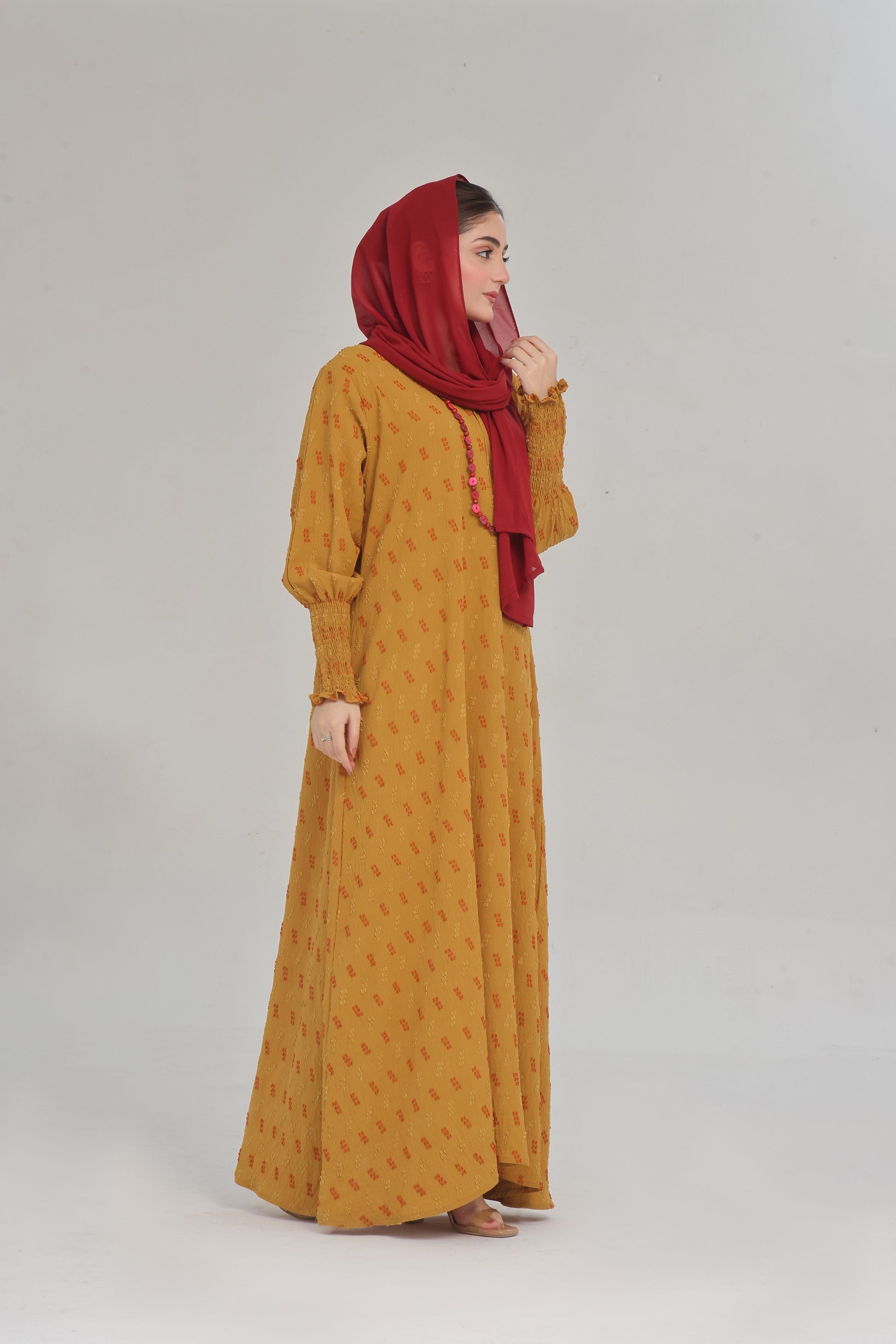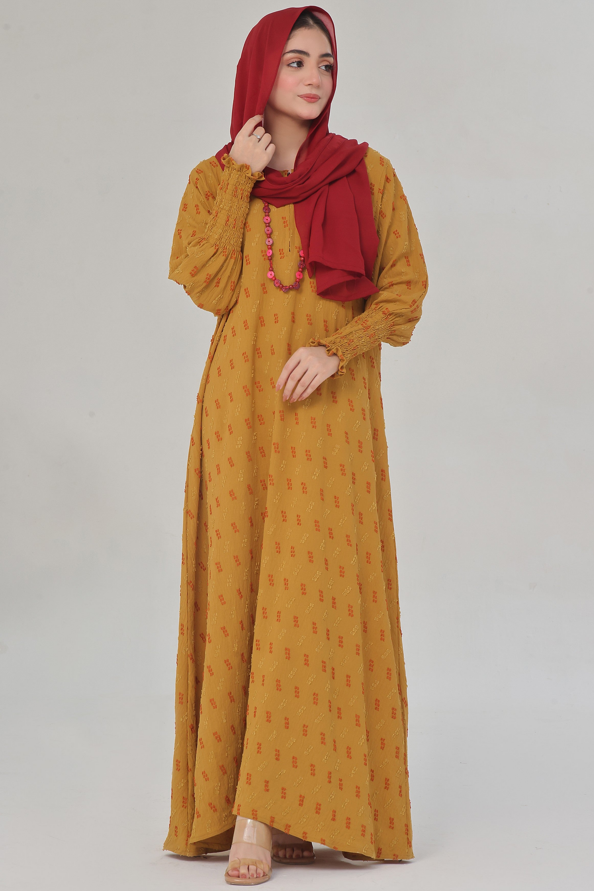This is a must for your wardrobe collection with our new latest design CY fabric which is breathtaking and ultimately gorgeous which is our hot sellers these days maxi style abaya with elastic sleeves which comes along with Pure Contrast chiffon Sheila