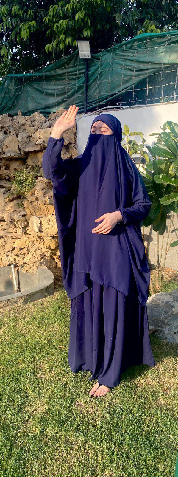premium Navy Blue 3-Piece Jilbab Set