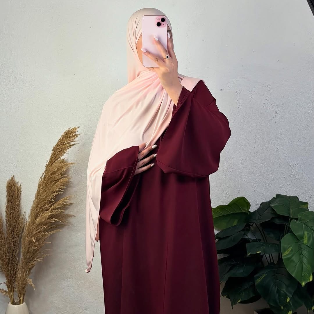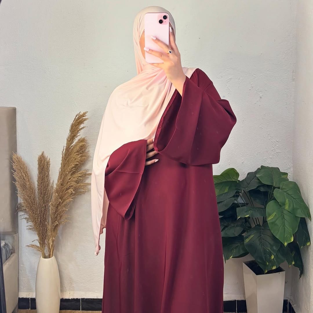 Upgrade your modest fashion collection with the maroon Plain Regular Wear Abaya by Aurora—the perfect blend of elegance and practicality.